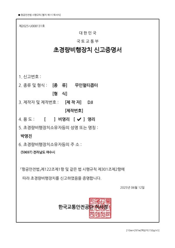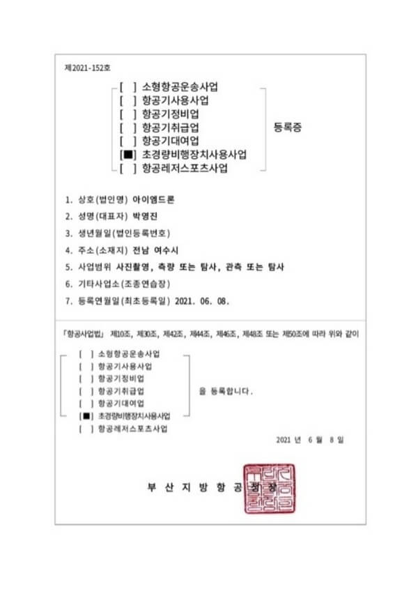 국가자격보유, 보험 가입을 완료한 전문 조종 인력이 직접 운용합니다.